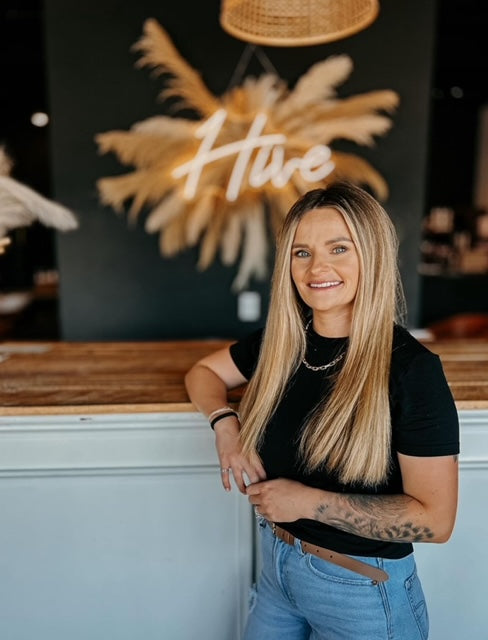 Meet Blair! Blair is one of the owners of Hive Hair Co., and owns BsKnees Shop. Blair specializes in hand tied extensions and blonding. She is an Invisible Bead Extensions Master Technician . Blair loves Pepsi, going to brunch, and traveling!